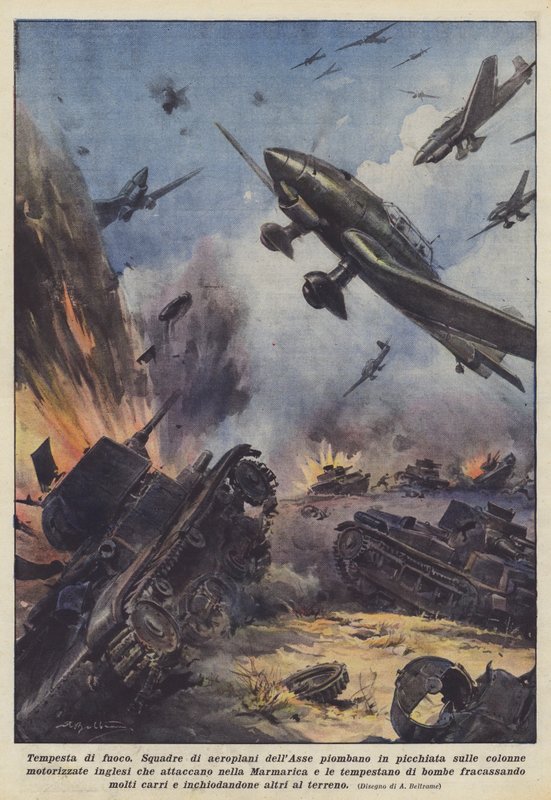 allies · axis · world war ii · second world war · wwii · soldier · soldiers · fight · fighting · battle · battles · military · army · plane · planes · airplane · airplanes · aeroplane · aeroplanes · north africa · north african · north africans · bombed · bombing · bomb · explosion · explosions · exploding · exploded · smoke · tank · tanks · english · england · british · britain · dropping · dropped · drop · squadron · force · flight · flying · flames · dogfighting · dogfight · attacking · attacked · attack · Private Collection / Bridgeman Images · / Look and Learn |