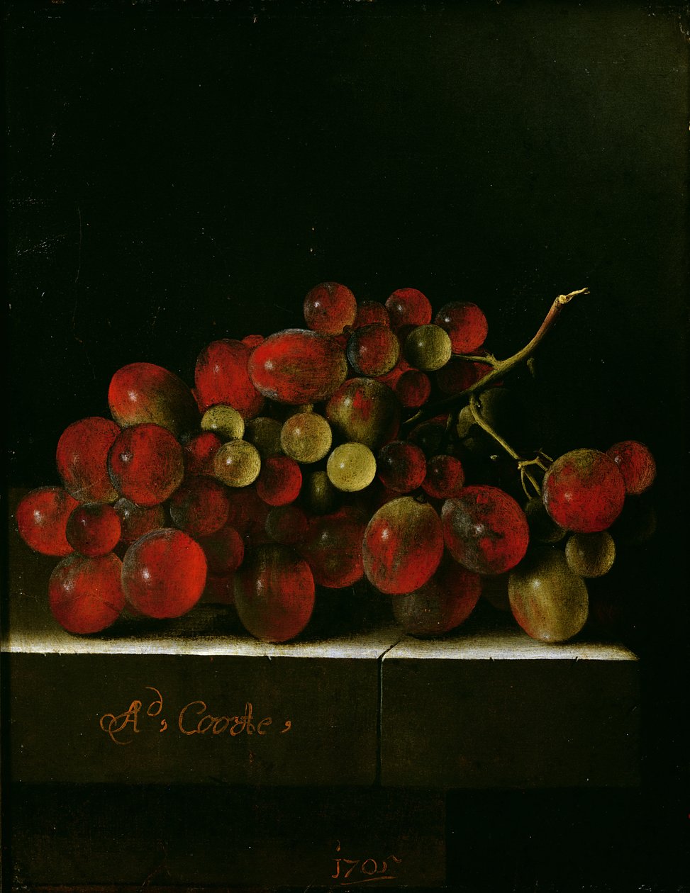 Bunch of Grapes, 1705(Bunch of Grapes, 1705 (oil on paper on panel))Adrian Coorte |