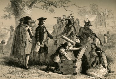 europe · england · benson john · benson j. · benson j · benson j. lossing · benson j lossing · johnson miles · johnson · colonists · people · male · country · local · trunk · continent · english · european · gifts · native · native american · gift · present · location · exchange · century · colonial · agreement · handshake · shaking hands · native americans · concept · american indian · exchanging · monochrome · red indian · 17th century · united states of america · treaty · settler · 19th century · black white · black and white · nineteenth century · american · history · historic · america · seventeenth century · colonialism · william penn · felix octavius carr darley · indigenous · engraving · settlers · united states · william · penn · miles · albert bobbett · bobbett · albert · bobbett · alfred · alfred bobbett · darley · felix octavius carr · felix o.c. darley · darley · felix o.c. · felix darley · darley · felix · benson john lossing · lossing · The Print Collector/Heritage Images