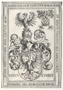 germany · holding · german · arts · country · design · dress · renaissance · location · century · helmet · cherub · shield · monochrome · putto · black white · black and white · coat of arms · 16th century · 1900s · 20th century · heraldry · sixteenth century · putti · albrecht durer · albert durer · jerome · durer · albrecht · bookplate · jerome ebner · ebner · The Print Collector/Heritage Images |