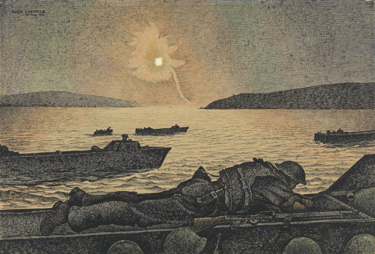 germany · europe · boat · transport · canada · north america · america (continent) · coast · navy · night · soldier · ship · ships · shipping · landscape · flare · flares · coasts · navy · seascape · world war ii · seascapes · male · world war two · soldiers · landscapes · paintings · second world war · nighttime · painting · ww2 · wwii · Painting · Mzpainting · Canadian War Museum, Ottawa, Canada / Bridgeman Images |