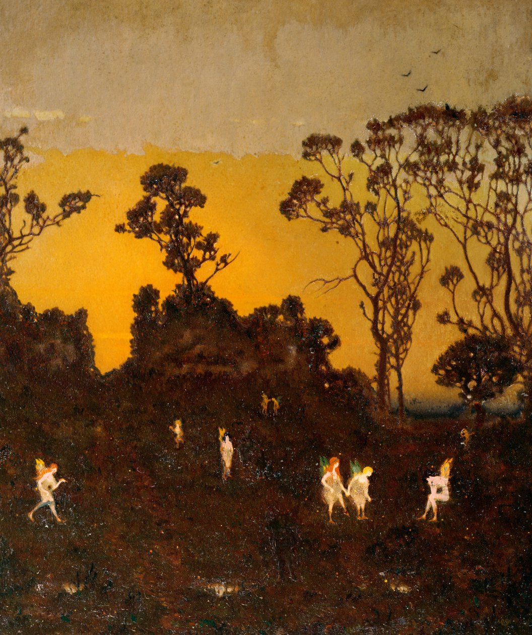 hamadryad · fairy · fairies · tree-dwellers · dryad · dryads · nymph · nymphs · dawn · sunrise · romantic · fantasy · landscape · fantastical · daybreak · Private Collection / Bridgeman Images |