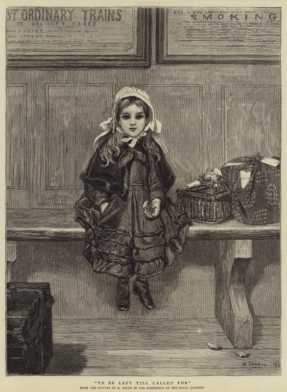 left · till · called · children · girls · fashions · clothing · railway stations · waiting rooms · Private Collection / Bridgeman Images · / Look and Learn |
