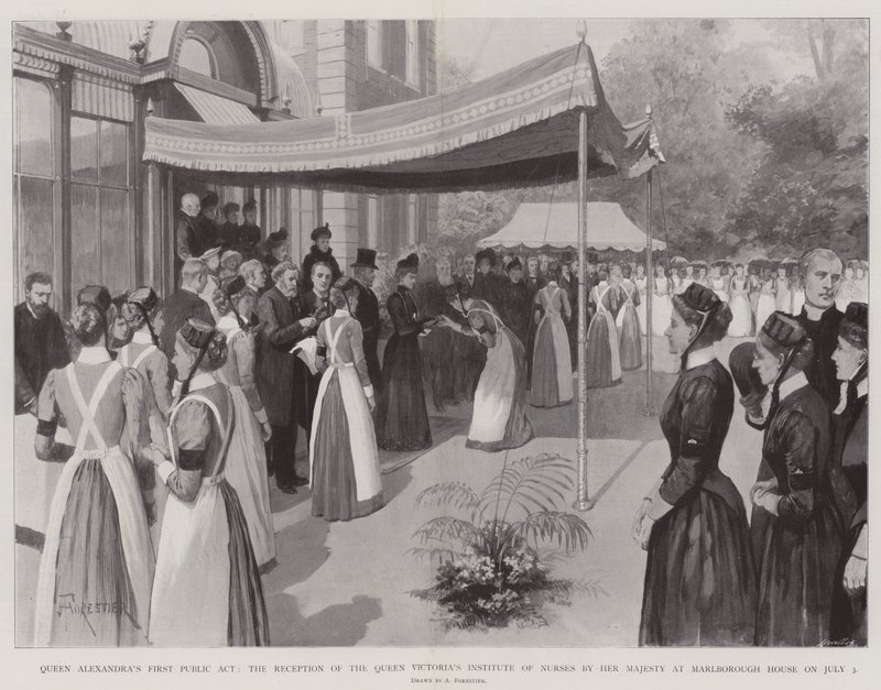 Queen Alexandra's First Public Act, the Reception of the Queen Victoria's Institute of Nurses by Her Majesty at Marlborough House on 3 July(Queen Alexandra's First Public Act, the Reception of the Queen Victoria's Institute of Nurses by Her Majesty at Marlborough House on 3 July )Amedee Forestier |