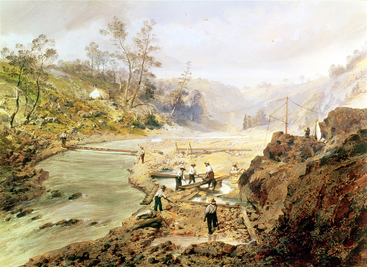 miners · rush · camp · panning · landscape · boom · calaveras · forty niners · 49ers · mining · californian · stream · Private Collection / Bridgeman Images |