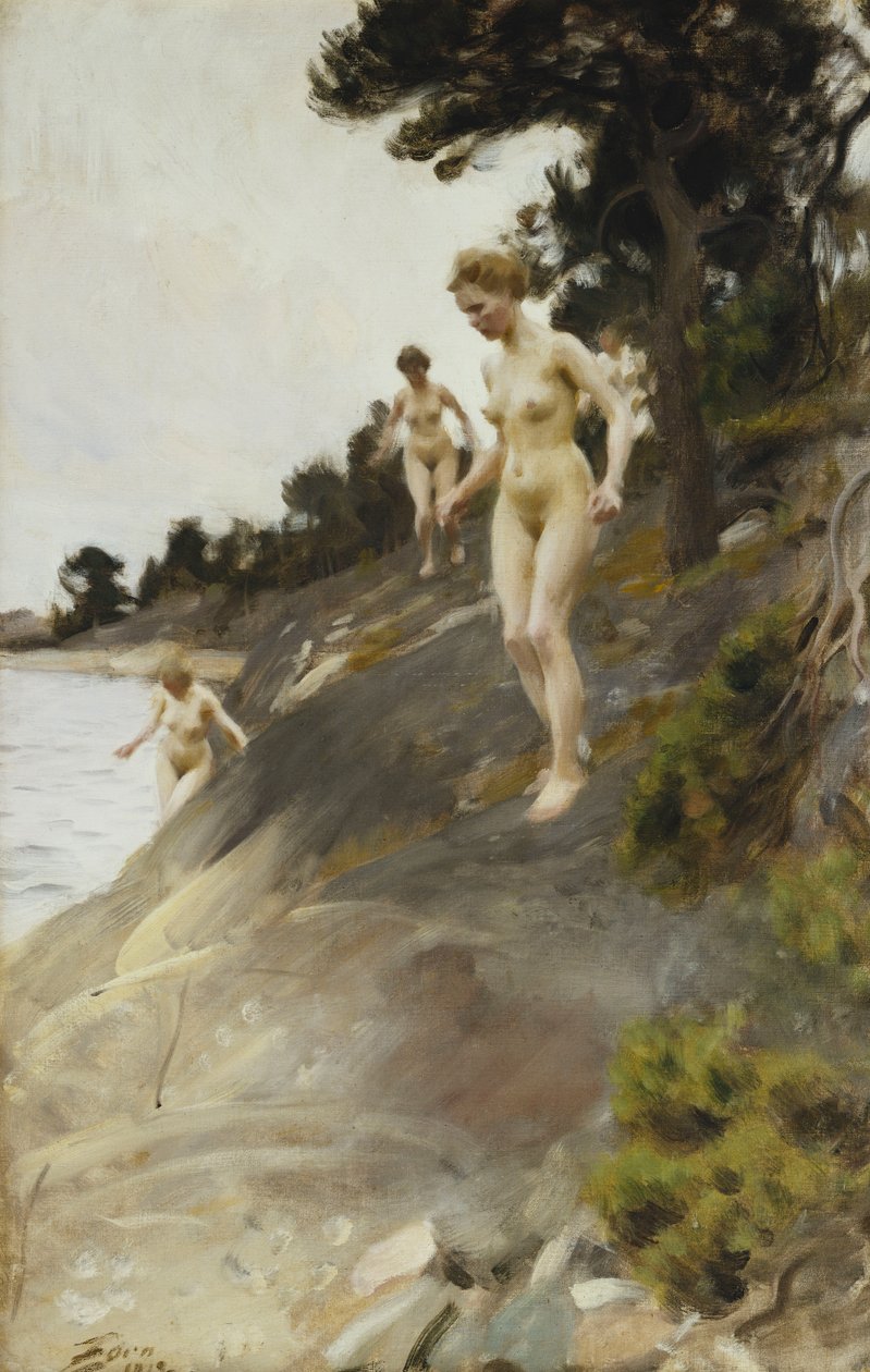 20th century · early twentieth century · oil on canvas · female · oil painting · women · cliff · coastline · small group of people · fine art · 19th century painting · natural space · shoreline · swedish art · standing · feeling · people · expression · bather · skin · caucasian · bathing · caucasian ethnicity · early 20th century · looking down · european artist · mid adult · scandinavian artist · scandinavian art · human · posture · emotion · three people · adult · naked · 1910s · woman · frightened · artist european · 082012upload · artist swedish · ethnic origin · artist-scandinavian · artist scandinavian · adversity · risk · scared · twentieth century · coastal · artwork · group · mood · shore · nude · small group · facial expression · swedish artist · artist-swedish · coast · painting · anders leonard zorn · 1910s · anders zorn · zorn · Private Collection / Bridgeman Images |