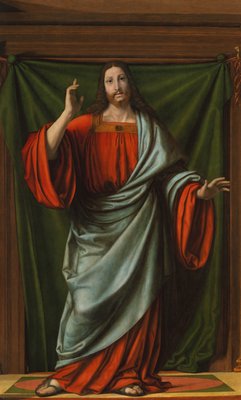 italy · italian · people · male · footwear · fashion · shoes · religious · painting · country · religion · clothes · museum · robes · robe · christianity · dress · christ · jesus · jesus christ · renaissance · location · century · gesturing · shoe · clothing · sandal · sandals · full length · hand gesture · blessing · oil painting · colour · the met · metropolitan museum of art · the metropolitan museum of art · 16th century · sixteenth century · 15th century · benediction · fifteenth century · oil on wood · oil on wood · heritage art · andrea solario · solario · andrea · andrea del gobbo · gobbo · andrea del · Heritage Art/Heritage Images