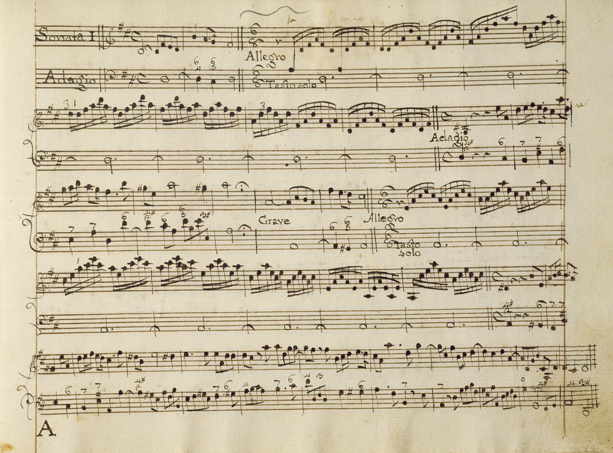 Manuscript Page from the Score of Opus V, 'Sonata for Violin, Violone, and Harpsichord'(Manuscript page from the score of Opus V, 'Sonata for violin, violone, and harpsichord')Arcangelo Corelli |