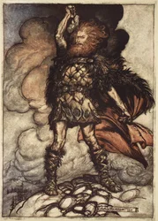 germany · religious · german · country · entertainment · religion · crime · british · angry · color · colour · anger · giant · deity · opera · illustration · location · century · britain · taking · concept · rage · legend · myth · mythology · fury · goddess · kidnapped · kidnapping · abduction · germanic · legendary · 1910s · 20th century · abducting · freya · norse mythology · lithograph · seizing · der ring des nibelungen · freia · the ring of the nibelung · richard · wagner · richard wagner · wilhelm richard wagner · historica graphica collection · arthur rackham · rhine gold · fafner · fasolt · rackham · arthur · Historica Graphica Collection/Heritage Images