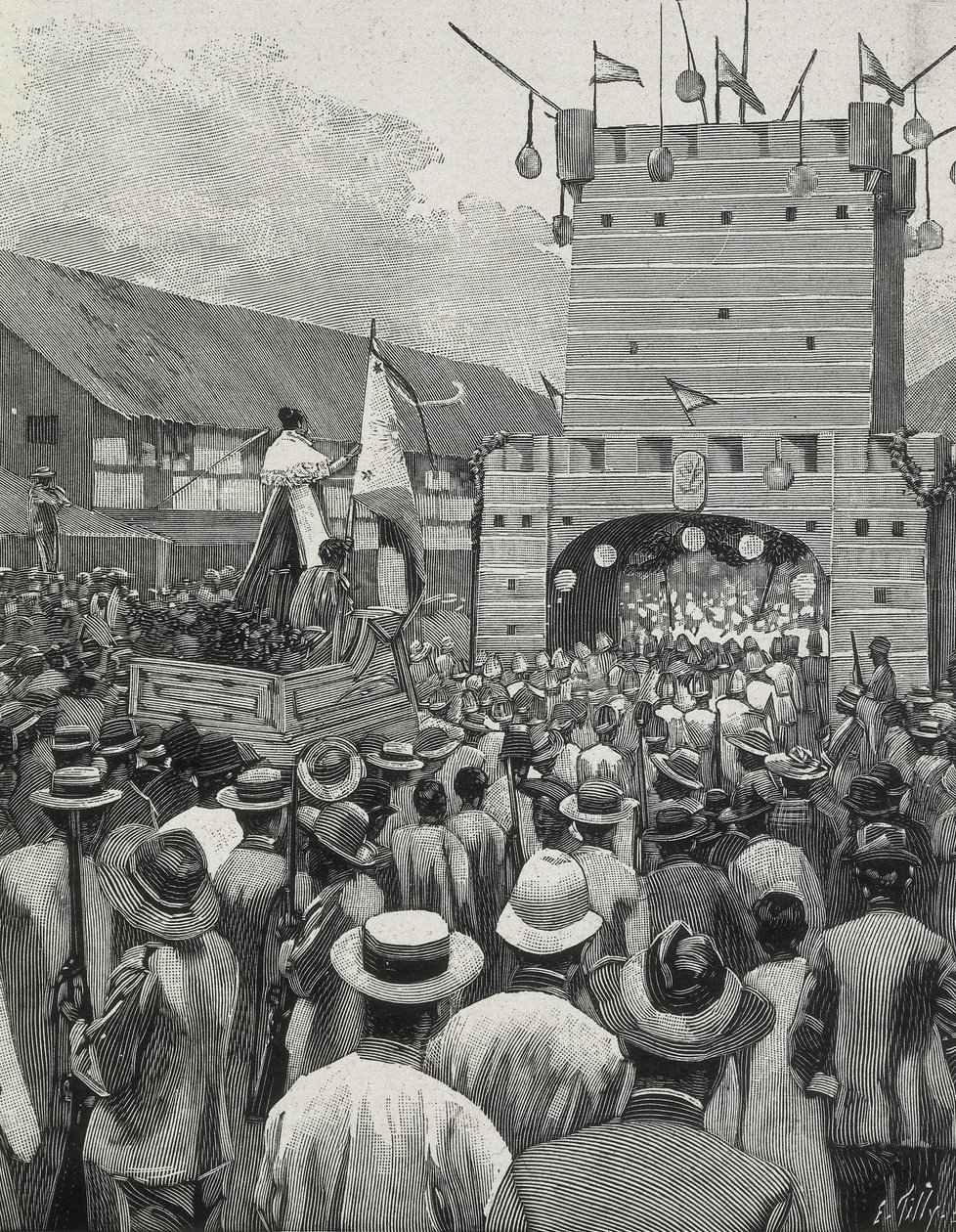 carriage · engraving · philippines · asia · south east asia · mzengraving · manila · 19th century · scene · engraving · history · asia · military · demonstration · back & white · banner · imperialism · independence · / Bridgeman Images |