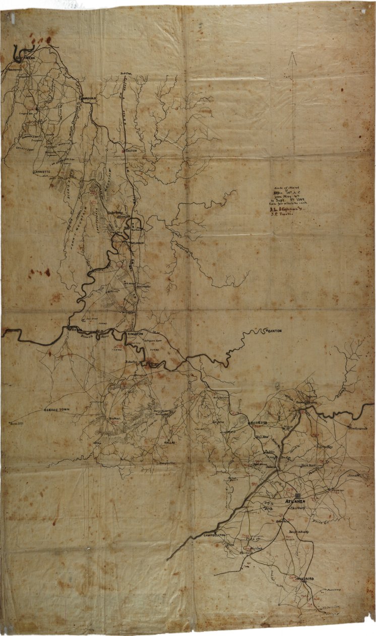 Civil War Map of General Sherman's Atlanta Campaign, 1864(Manuscript Civil War map of General Shermans Atlanta campaign, c.1864 )Asbury L. and Snell, J.P. Stevens |