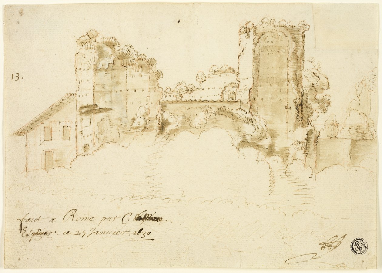 Undated · Pen and brown ink, with brush and brown wash, over red chalk, on cream laid paper