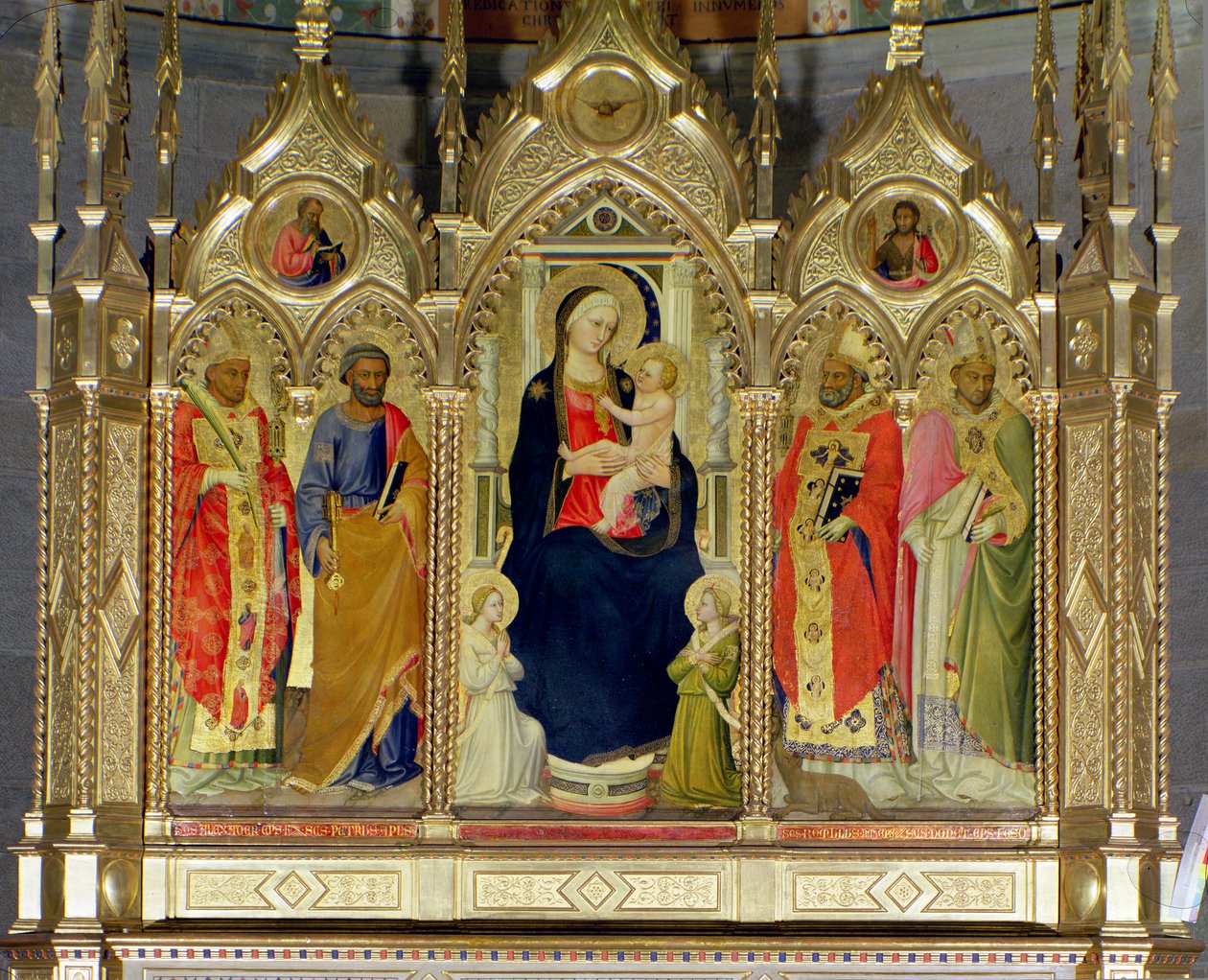saint · virgin · angel · devotion · enthroned · renaissance · altarpiece · triptych · Peter · Duomo, Fiesole, Italy / Bridgeman Images