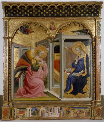 christian · religious · biblical · panel · angel · life of christ · wood · gospels · angel gabriel · italian · bible · wooden · early · virgin mary · italian renaissance · florentine · christianity · annunciation · new testament · gothic · florence · altarpiece · painting · renaissance · religion · gabriel · predella · Walters Art Museum, Baltimore, USA / Bridgeman Images