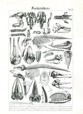 19th century · germany · europe · anatomy · animal · whale · marine mammal · skull · skeleton · dolphin · natural history · many animals · zoology · black and white · lithograph · print · mzengraving · zoological plate · / Bridgeman Images