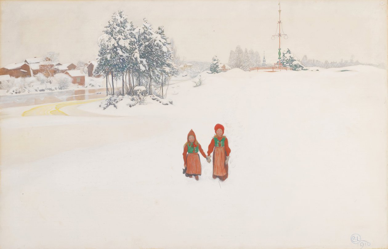 two persons · 2 persons · two people · 2 people · several persons · several people · 20th century · 20 century · xx century · xxth century · twentieth century · 20 20th xx xxth twentieth century · 20 20th xx xxth century · 20 20th 20th xx xxth 20th century · c20th · 1900s · 1900's · 1900-1909 · 1910s · 1910's · 1910-1919 · arts · countryside · colour · colours · color · coloured · colors · child · children · winter · wintertime · season · snow · snowy · meteorology · weather · climate · science · painting · paint · paintings · sweden · swedish · scandinavia · european union · europe · european · europen · traditional costume · national costume · traditional dress · clothes · clothe · cloth · Larsson Carl (1853-1919) · painter · artist · · Private Collection / Bridgeman Images |