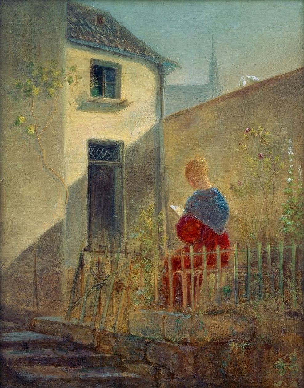 biedermeier · letter · german · loneliness · woman · women live · garden · park · genre · house · home garden · free · (general) · read (general) · leserin · people · in · garden · back figure · house garden · Schweinfurt, Museum Georg Schäfer / akg-images |