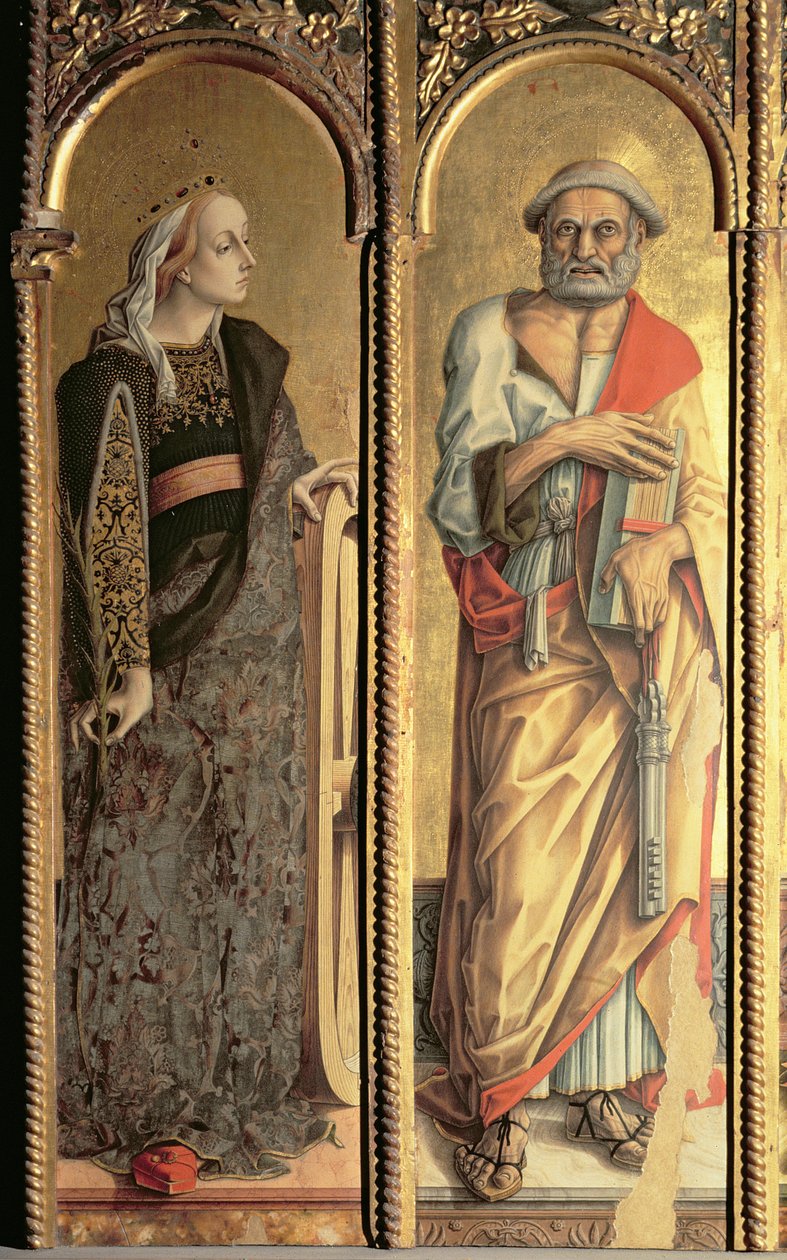 St. Catherine of Alexandria and St. Peter (detail)(St. Catherine of Alexandria and St. Peter, detail from the Santa Lucia triptych (tempera on panel))Carlo Crivelli |