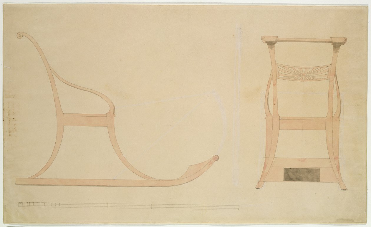 stuhlschlitten · design · sled · toboggan · side view · back view · neoclassical · Hamburger Kunsthalle, Hamburg, Germany / Bridgeman Images |