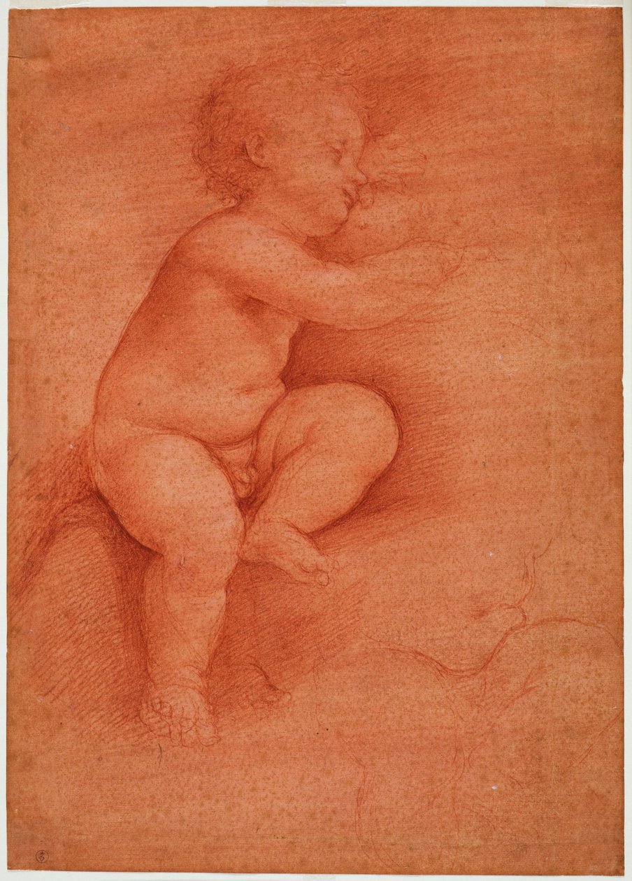 Study of Putto (Baby Jesus)(Study of putto (Baby Jesus), early 16th century (blood on red prepared paper))Cesare da Sesto |