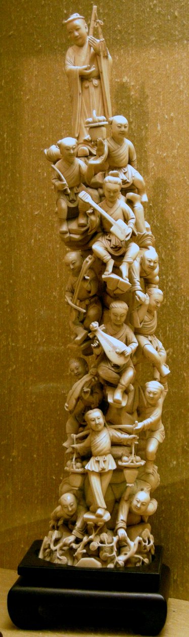 sculpture · carved · carving · ornate · intricate · music · musical · asian · tower · climbing · lute · mandolin · flute · scales · Musee d'art et d'histoire, Gueret, France / Bridgeman Images |