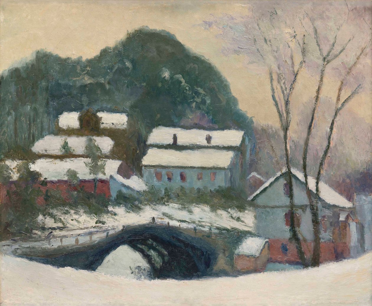 scandinavia · scandinavian · france · french · impressionist · norway · norwegian · sandvika · sandviken · houses · village · bridge · snow · snowy · snow-covered · picturesque · atmospheric · winter · wintry · seasons · rooftops · roofs · nordic · Private Collection / Bridgeman Images |