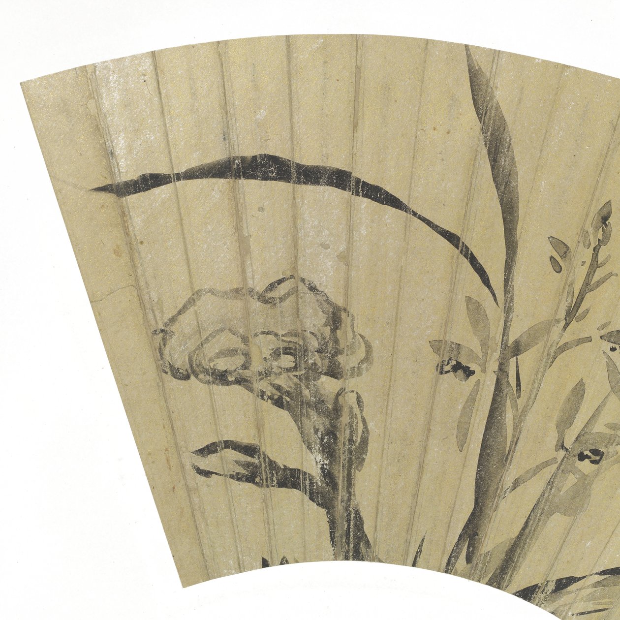 Orchids, Fungus and Rock (detail)(Detail of Orchids, Fungus and Rock ink on gold paper)Dong Qichang |