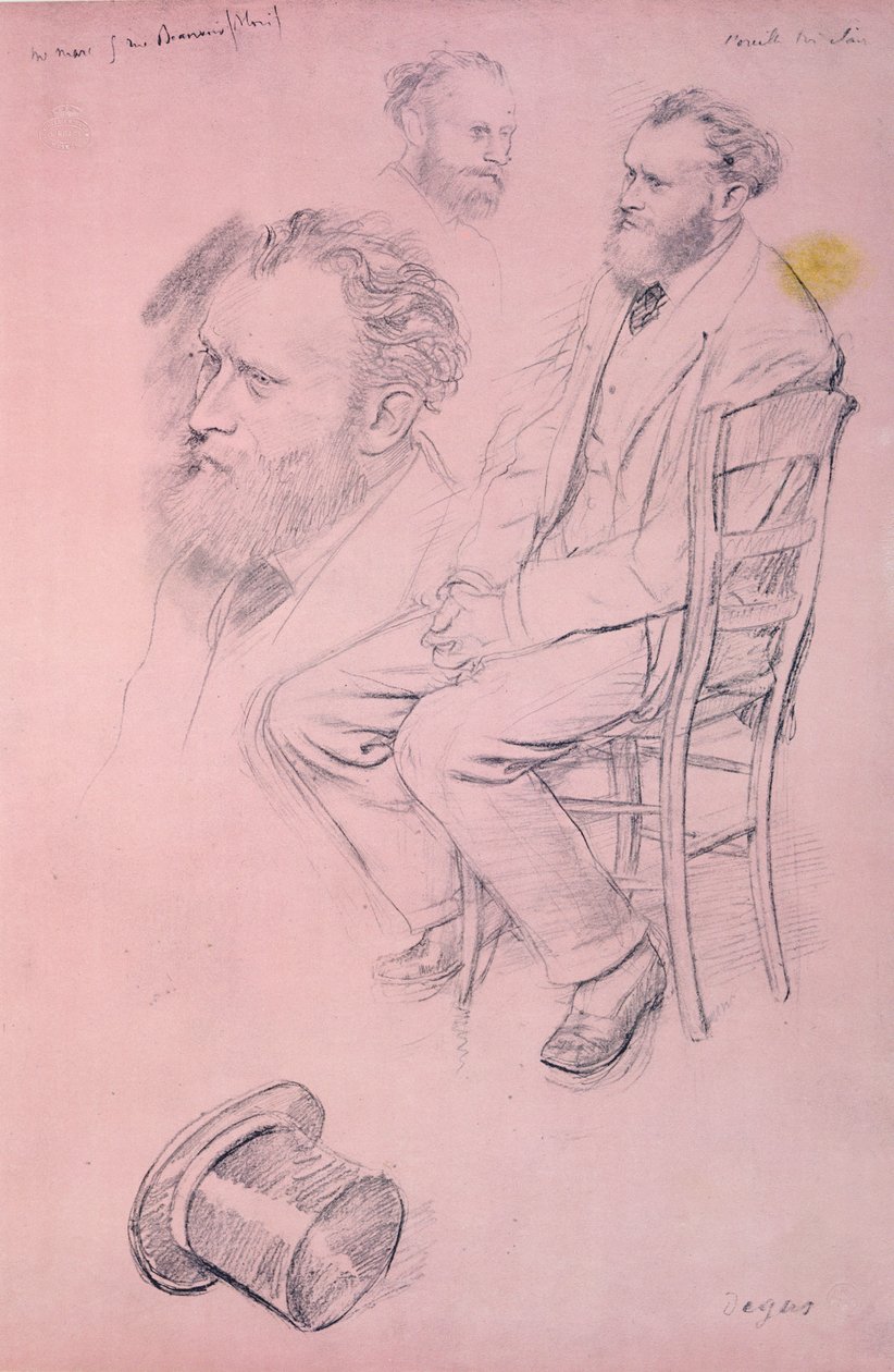 sketch · male · artist · seated · top hat · face · impressionist · Private Collection / Bridgeman Images |