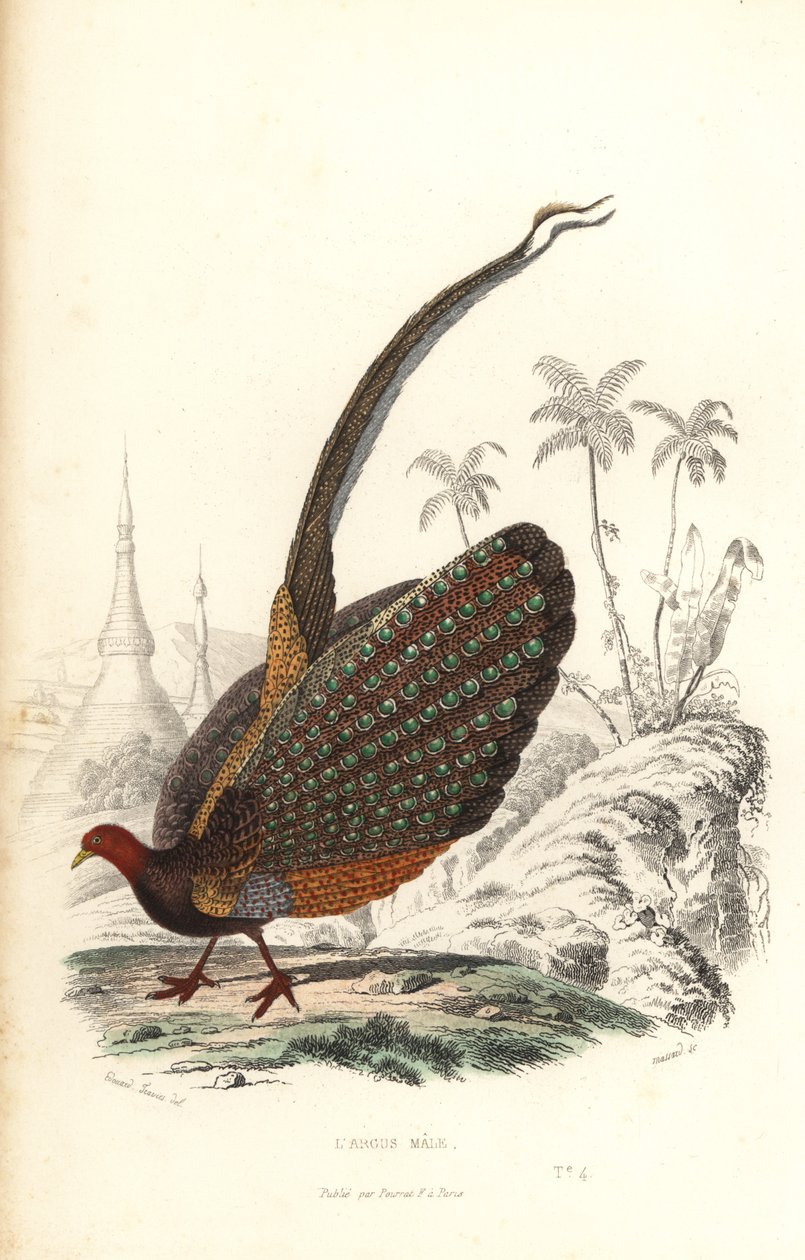 Great argus, Argusianus argus, vulnerable(Great argus, Argusianus argus, vulnerable. )Edouard (after) Travies |