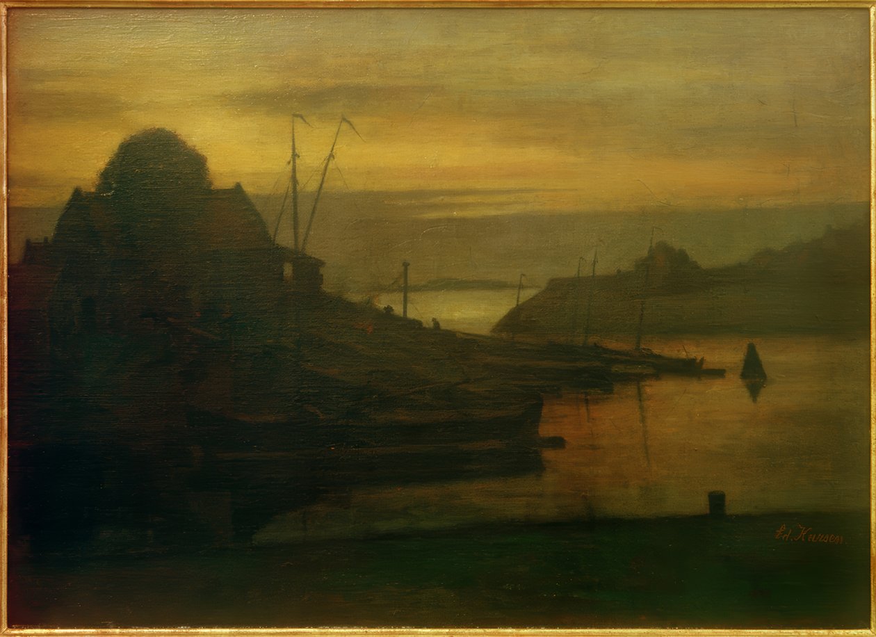 evening · afterglow · view · boat · dawn · harbor · nature · dutch · coast · landscape · morning · morning red · dutch · ship · shipping · sailing boat · signature · sunrise · sunset · times of day · bank · shipyard · geography · europe · continent · holland · ijsselmeer · muiden · netherlands · north holland · technology · paintings · painting · oil · on · canvas · Groningen, Groninger Museum / akg-images |
