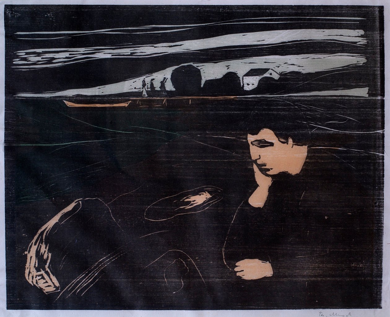 1900s · 1900's · 1900-1909 · 1900-1909 years 00 00s · 1900-1910 years 00 00s · 20th century · 20 century · xx century · xxth century · twentieth century · c20th · 20 20th xx xxth twentieth century · 20 20th xx xxth century · 20 20th 20th xx xxth 20th century · 20th · early twentieth century · mid-20th century · anxiety · anxious · concern · stress · stressful · stressed · worry · worrying · worried · arts · works of art · colour · color · coloured · colors · colours · colored · sadness · melancholy · unhappiness · forlorn · melancholia · unhappy · feeling · emotion · emotions · expressionism · expressionist · art movement · art style · masculine · norway · norwegian · norwegians · norway norwegian · europe · european · europae · scandinavia · scandinavian · landscape · landscapes · loneliness · alone · lonely · one person · person · only one person · 1 person · seated · sitting · sat down · munch edvard (1863-1944) · edvard munch · painter · artist · artists · print · evening · · Thiel Gallery, Stockholm, Sweden / Bridgeman Images
