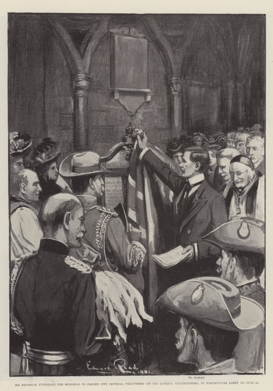 Mr Brodrick Unveiling the Memorial to Fallen City Imperial Volunteers (of the Queen's Westminsters) in Westminster Abbey on 22 June(Mr Brodrick unveiling the Memorial to Fallen City Imperial Volunteers (of the Queen's Westminsters) in Westminster Abbey on 22 June )Edward Read |