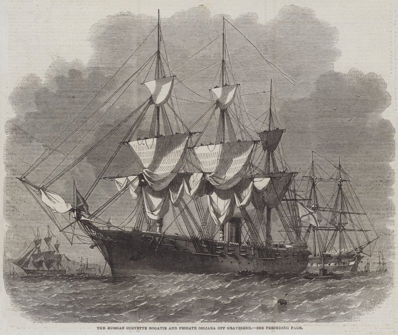 russian corvette bogatir · frigate osliaba · gravesend · ships · maritime · kent · Private Collection / Bridgeman Images · / Look and Learn