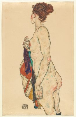 Standing Nude with a Patterned Robe, 1917Egon Schiele |