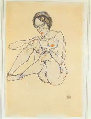 Seated Female Nude(Seated female nude, 1914)Egon Schiele |