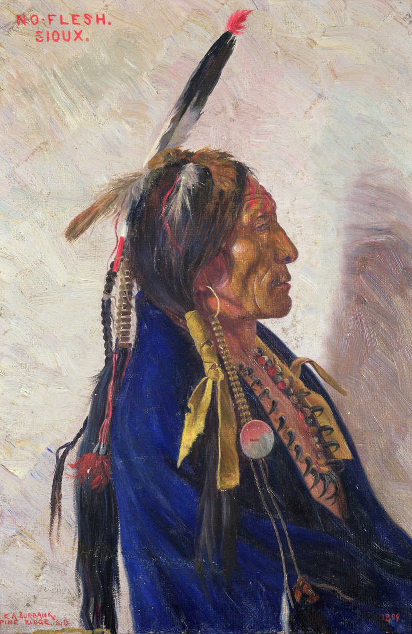 ceremony · north america · america (continent) · old person · elder · native american indian · feather · profile · feathered headdress · ritual · traditional costume · north america · jewellery · tribe · tribal · seated · portrait · america · male · careworn face · traditional dress · jewelry · sioux · Painting · Mzpainting · / Bridgeman Images |