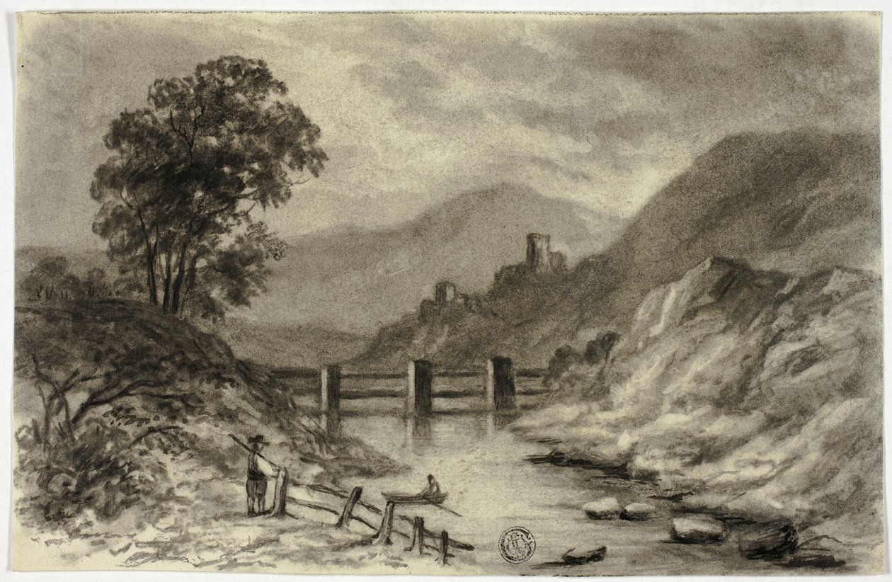 Undated · Charcoal with stumping, with brush and black ink on ivory wove paper