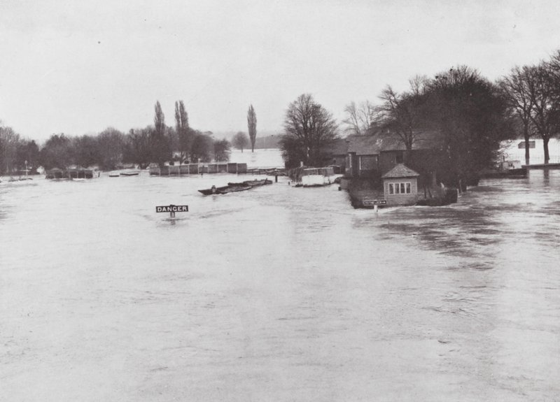 20th century · england · united kingdom · europe · 1940s · flood · natural disaster · water · reading · rain · thames · river · london · black and white · photo · mzphoto · valley · Private Collection / Bridgeman Images · / Look and Learn |