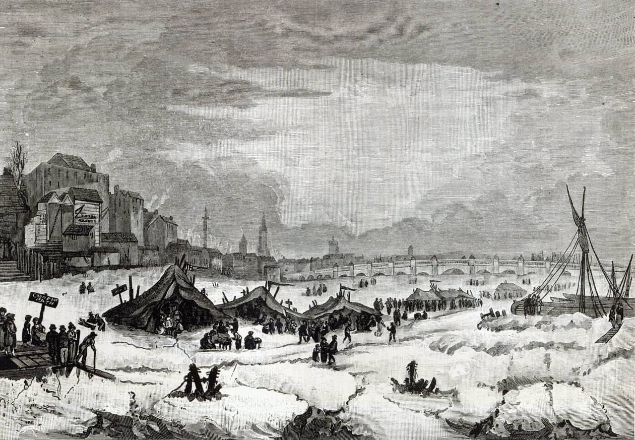 tent · frozen · river thames · tents · frost · winter · amusements · marketplace · snow · Georgian · Private Collection / Bridgeman Images |