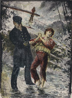 John Alexander Strachan Giving His Life Jacket to a Young Stowaway Before the Ship Was Wrecked in a Gale off the Welsh Coast in 1881(John Alexander Strachan, captain of the steamship Cyprian, giving his life jacket to a young stowaway before the ship was wrecked in a gale off the Welsh coast in 1881 (colour litho))English School |