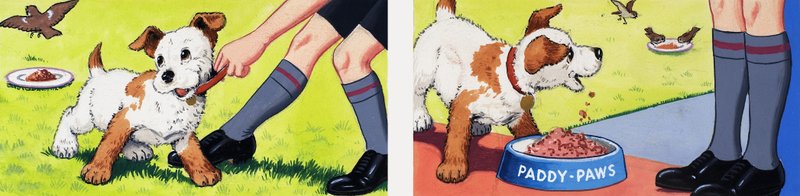 paddy paws · puppy · food · collar · bird · Private Collection / Bridgeman Images · / Look and Learn |