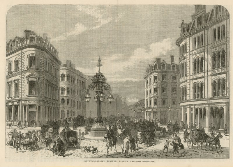 street scenes · london · people · horses · horse-drawn · transport · southwark street · borough · Private Collection / Bridgeman Images · / Look and Learn |