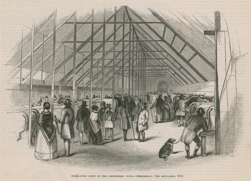 cattle shows · agricultural shows · interiors · agriculture · baker street bazaar · people · women · cattle · livestock · london · cattle show · Smithfield Club · Private Collection / Bridgeman Images · / Look and Learn |