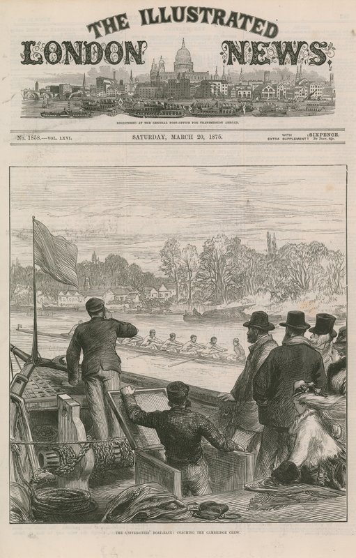 boat races · boats · people · preparations · spectators · coaching · sports · university boat race · river scenes · river thames · universities · boat · race · Private Collection / Bridgeman Images · / Look and Learn |