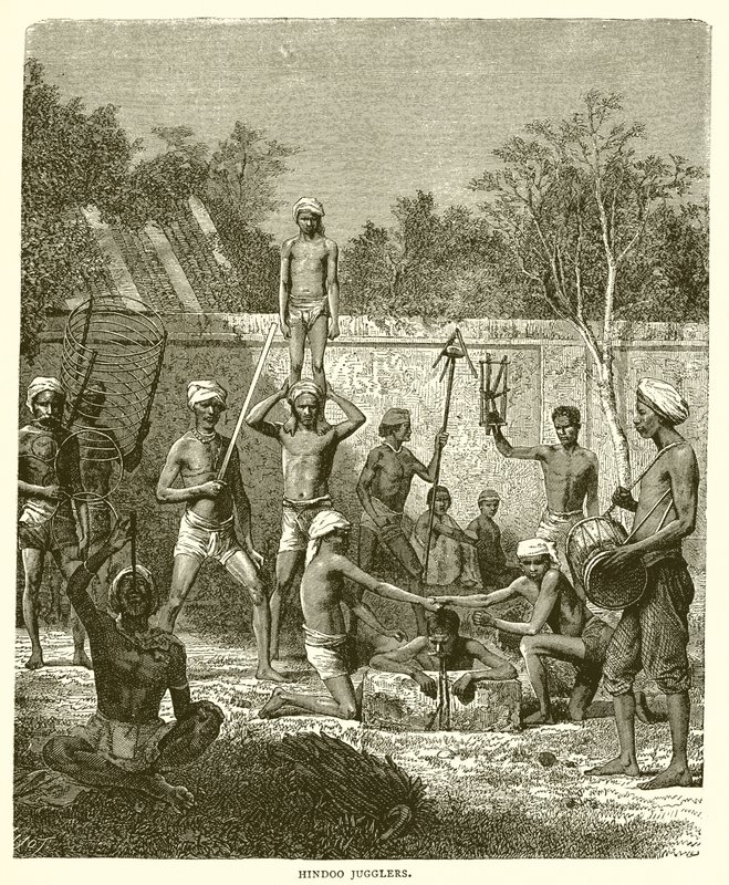 india · history · hindoo jugglers · hundu · jugglers · entertainers · Private Collection / Bridgeman Images · / Look and Learn