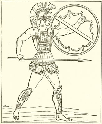 (Greek warrior armed with spear and shield )