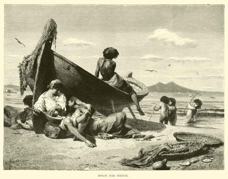 italy · italian · sweet far nothing · naples · rest · relaxation · Private Collection / Bridgeman Images · / Look and Learn |