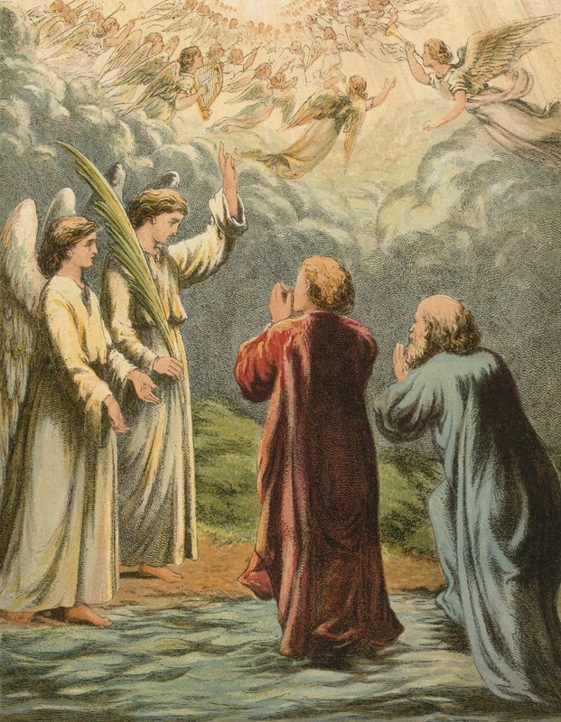 john bunyan · pilgrims progress · english literature · pilgrims · crossing · river · Private Collection / Bridgeman Images · / Look and Learn |