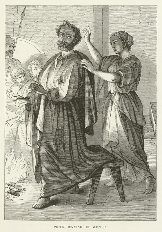 bible · biblical · christianity · religion · new testament · denial · denying · saint · apostle · disciple · st peter · christ · jesus · servant · girl · Private Collection / Bridgeman Images · / Look and Learn |