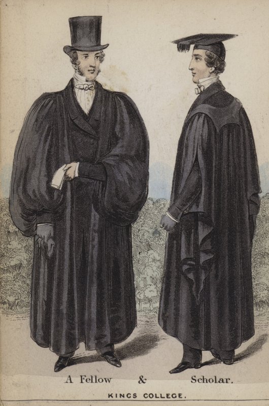 university of cambridge · cambridge university · oxbridge · education · academic · headware · students · mortar boards · gowns · subfusc · sub fusc · formal · attire · dress · clothing · clothes · dons · teachers · college · colleges · fashion · traditional · a fellow · scholar · kings college · Private Collection / Bridgeman Images · / Look and Learn